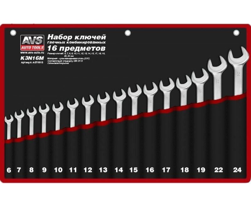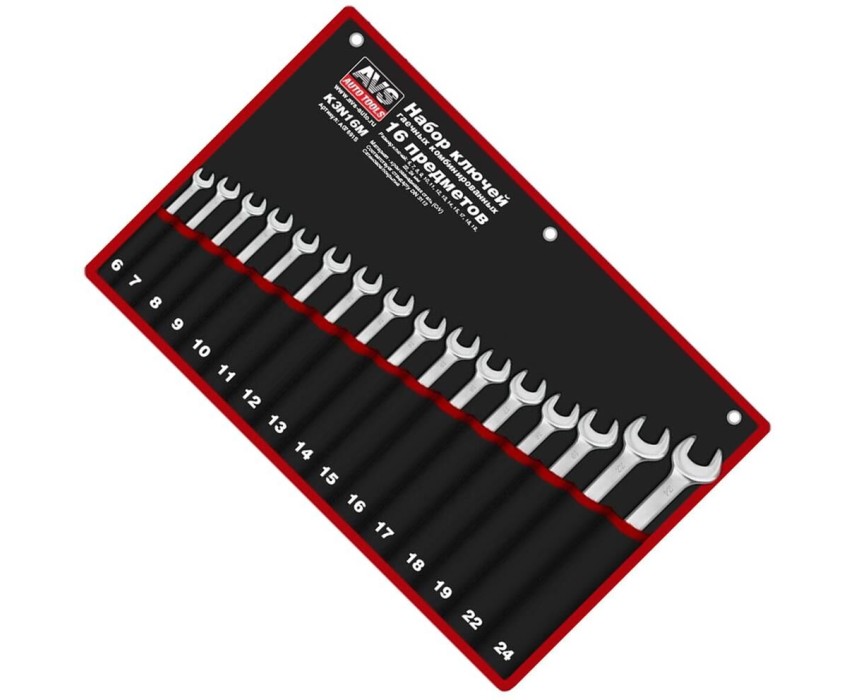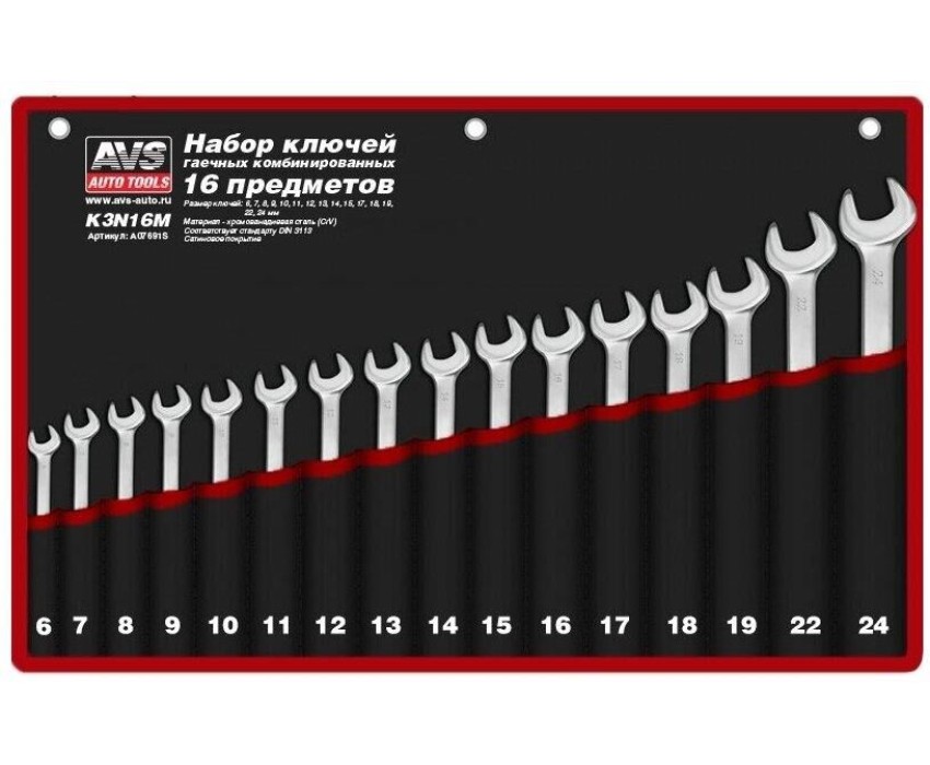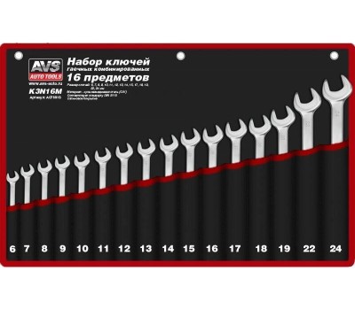 Набор ключей AVS TOOLS гаечных комбинированных в сумке (6-24 мм) (16 предметов) K3N16M
