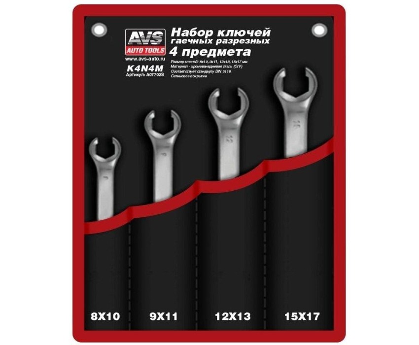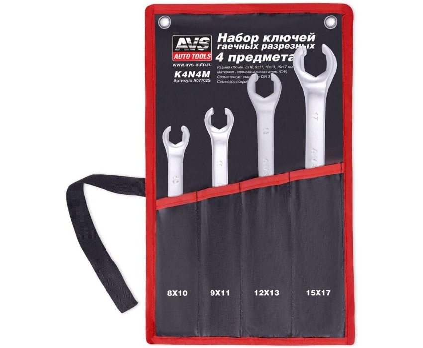 Набор ключей AVS TOOLS гаечных разрезных в сумке (8-17 мм) (4 предмета) K4N4M