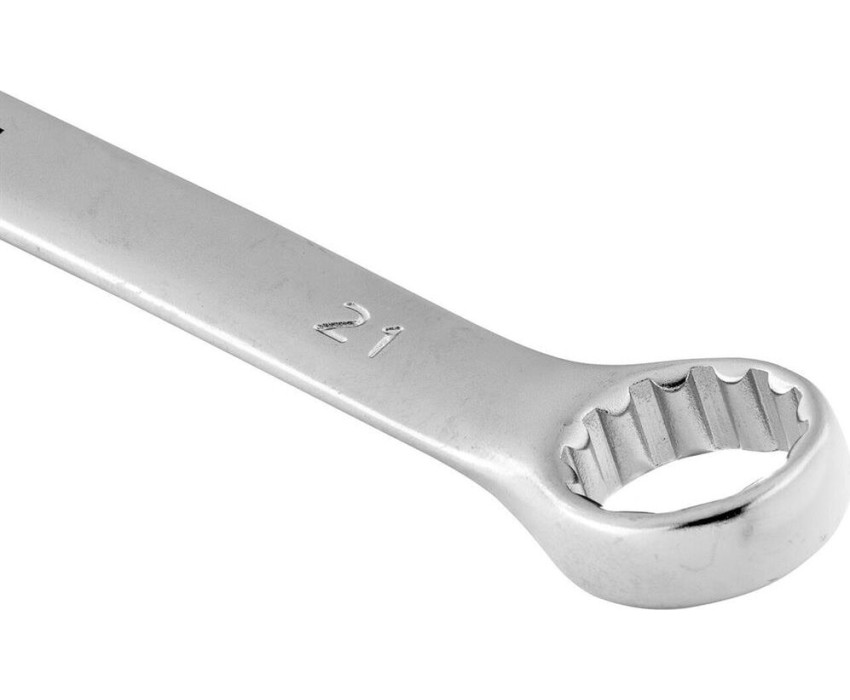 Комбинированный ключ Stels 15225 из стали CrV, 21 мм, покрытый матовым хромом, используется для закручивания и откручивания гаечных и болтовых соединений. Накидная головка имеет 12-гранную внутреннюю поверхность, что облегчает работу с крепежом и уменьшает опасность его повреждения. Ключ применяется в слесарных мастерских и автосервисах, а также будет полезен для решения бытовых задач.ПреимуществаВысокий показатель прочности — ключ изготовлен из стали хромованадиевой группы, рабочая часть закалена до твердости 45 HRC.Матовое хромоникелевое покрытие — инструмент защищен от образования коррозии.Комфорт при монтаже в труднодоступных местах — кольцевой зев наклонен под углом в 15 градусов к плоскости ключа.