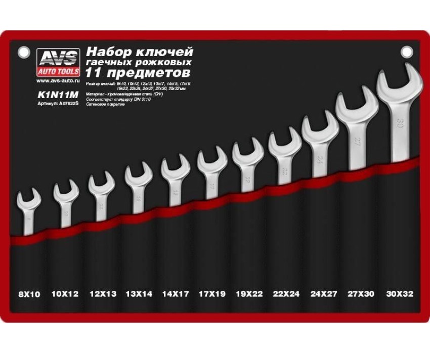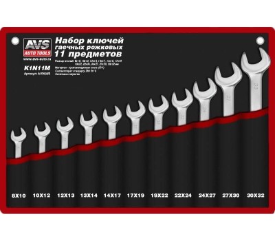 Набор ключей AVS TOOLS Набор ключей гаечных рожковых в сумке (8-32 мм) (11 предметов) AVS K1N11M