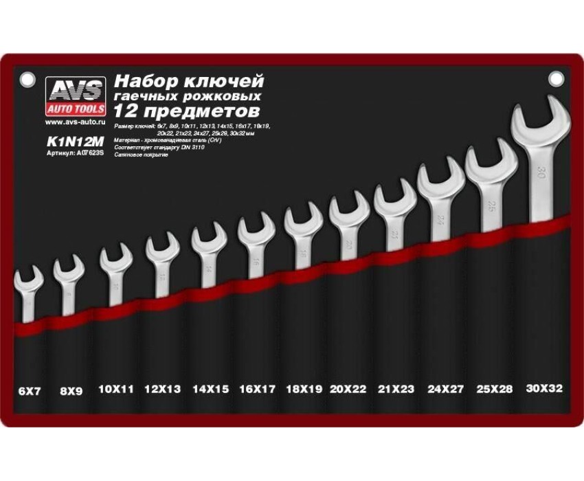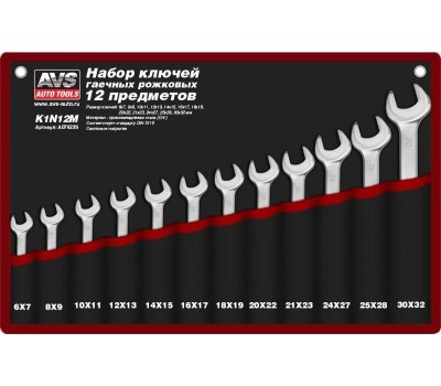 Набор ключей AVS TOOLS Набор ключей гаечных рожковых в сумке (6-32 мм) (12 предметов) AVS K1N12M