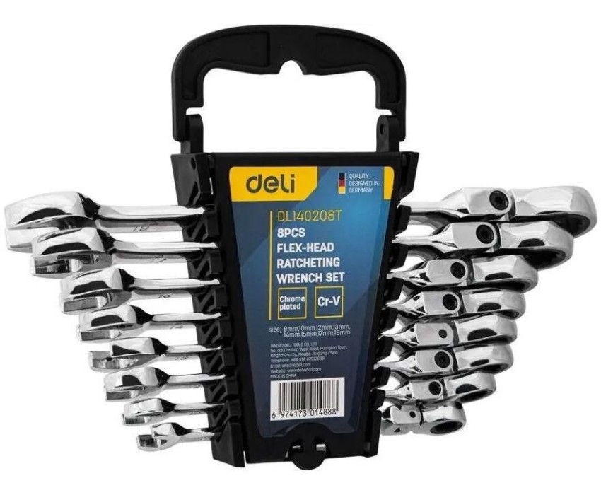 Материал: сталь. Покрытие: хром. Тип: Набор ключей. Трещоточный: да. Страна производства: Китай. Количество предметов: 8 предметов. Комбинированные ключи, список: 8,10,12,13,14,15,17,19 мм. Максимальный размер ключа: 19. Минимальный размер ключа: 8. Гарантия: 12 мес.. Система измерения: метрическая. Форма ключа : прямой, шарнирный. Тип ключа: комбинированный. Особенности ключа: с шарнирным механизмом. Покрытие: хром. Тип ключа: комбинированный. Размер ключа: мин. - 8 мм, макс. - 19 мм. Форма ключа: прямой, шарнирный. Особенности: трещоточный, с шарнирным механизмом. Количество предметов: 8 предметов
