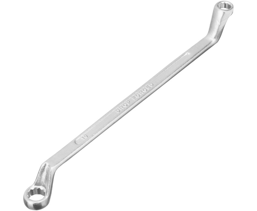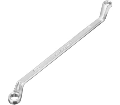 Накидной коленчатый ключ Sparta 147365 с хромированной поверхностью используется для монтажа и демонтажа резьбового крепежа с шестигранной головкой диаметром 8 и 10 мм. Пригодится для выполнения монтажных работ в гараже, на небольшом производстве и в быту. Кольцевой зев полностью захватывает шляпку крепежного элемента, поэтому ключом легко откручивать даже закисшие болты и гайки. Преимущества Прочность и долговечность — инструмент изготовлен из высококачественной углеродистой стали 45, твердость рабочих частей составляет 42 HRC, что соответствует требованиям ГОСТ (41-46 HRC). Устойчивость к воздействию влаги — хромовое покрытие защищает от образования коррозии. Надежный захват крепежа — 12-гранный профиль каждого кольцевого зева имеет увеличенную площадь соприкосновения с головкой болта или гайки, что минимизирует риск повреждения ее граней. Продуманная конструкция — рабочие части смещены относительно плоскости рукоятки, что делает удобной работу в труднодоступных местах.