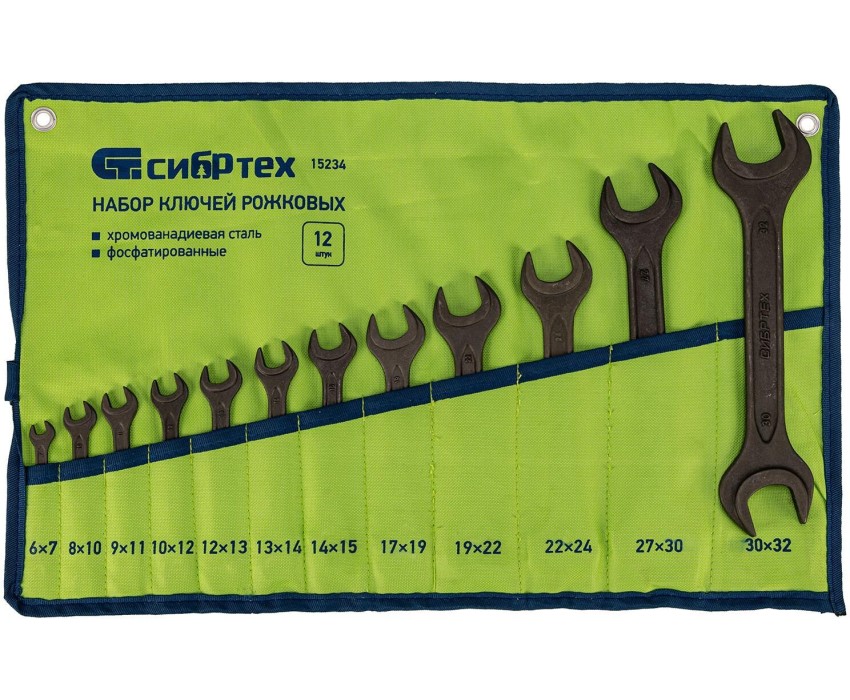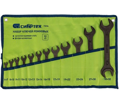 СИБРТЕХ Набор ключей рожковых, 6 - 32 мм, 12 шт., CrV, фосфатированные 15234