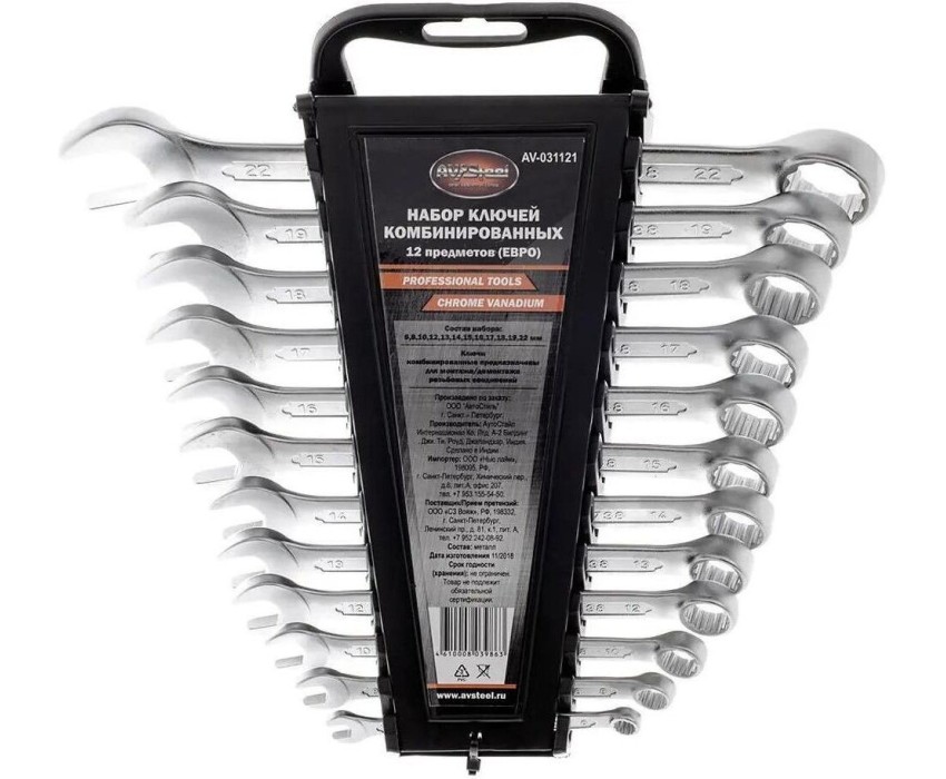 Модель: AV-031121 Описание: Набор ключей комбинированных 6-22 мм. "AV Steel" 12 предм. ЕВРО. Количество предметов: 12 предметов Бренд: AV STEEL PartNumber/Артикул Производителя: AV-031121 Страна производства: Индия Профессиональный инструмент: ДА Тип: Набор ключей