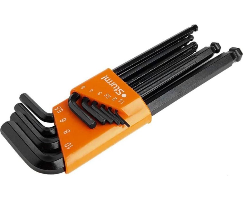Модель: 1045-04-10Bx10 Описание: Набор шестигранных ключей Cr-V с шаром 10 шт. 1,5-10 мм. Sturm 1045-04-10Bx10 используются при серийной работе с крепежом. Наличие шарового наконечника значительно упрощает вхождение инструмента в паз. Комплект поставляется в специальном держателе. Количество предметов: 10 предметов Бренд: STURM! PartNumber/Артикул Производителя: 1045-04-10BX10 Страна производства: Китай Габариты упаковки (ед) ДхШхВ: 0.11x0.24x0.03 м Вес упаковки (ед): 1.042 кг Объем упаковки (ед): 0.000792 м3 Тип: Набор ключей Максимальный размер ключа: 10 мм Шестигранные ключи, список: 1.5, 2, 2.5, 3, 4, 5, 5.5, 6, 8, 10 мм Система измерения: метрическая Форма ключа : Г-образный Особенности ключа: с шаровым окончанием Минимальный размер ключа: 1.5 мм Размеры ключей в наборе: 1.5, 10, 2, 2.5, 3, 4, 5, 5.5, 6, 8 мм