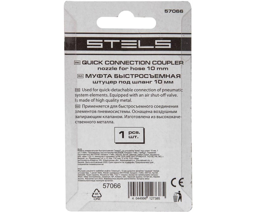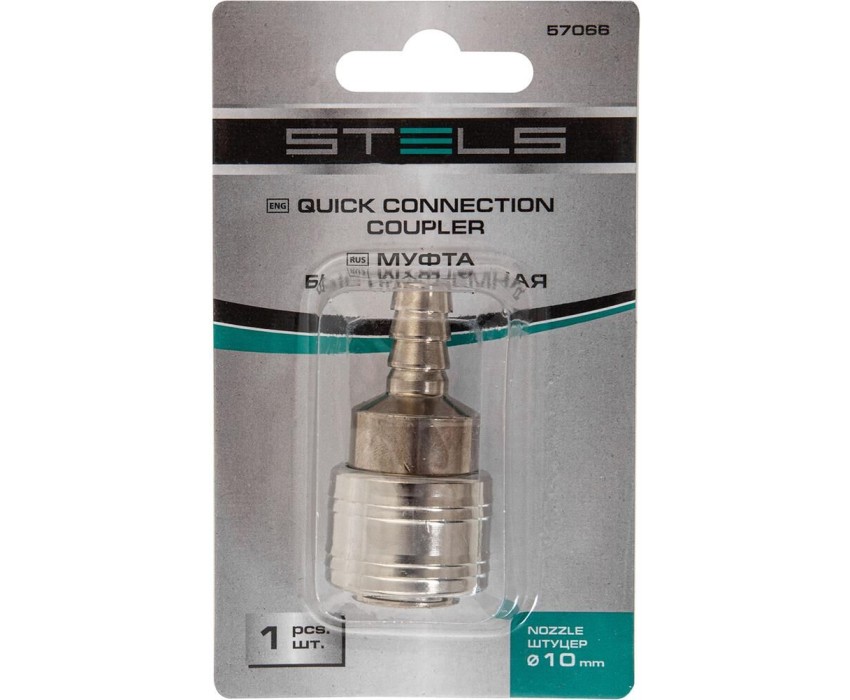 Муфта STELS Муфта универсальная быстросъемная ("мама") со штуцером "елка" под шланг 10 мм, 1 шт, 57066
