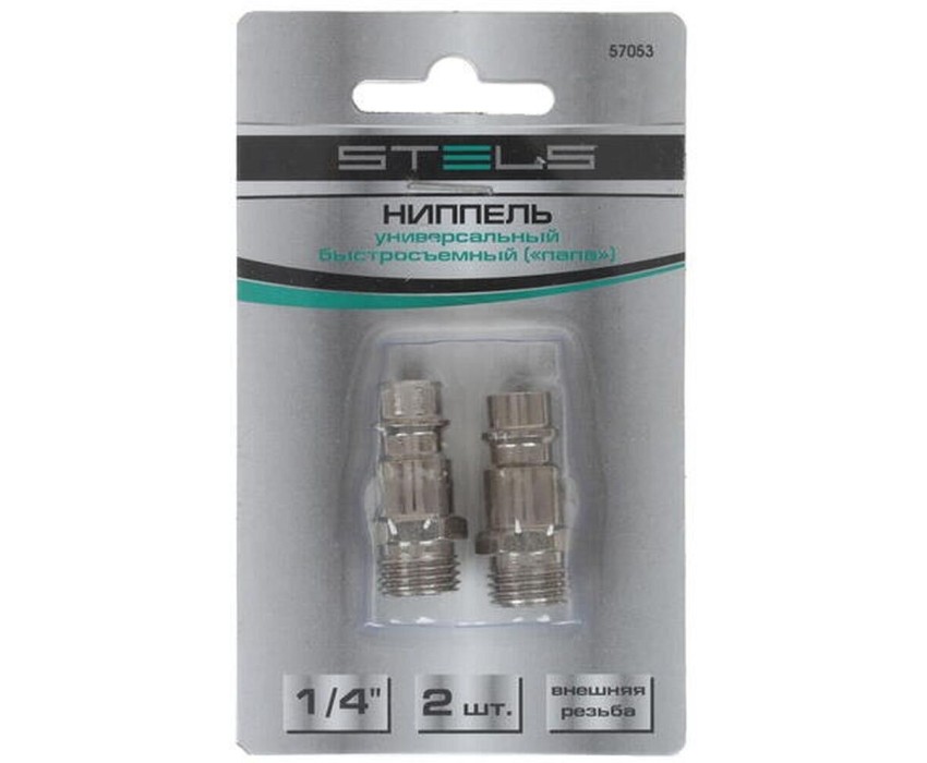 Ниппель STELS Ниппель универсальный быстросъемный ("папа") 1/4, внешняя резьба, 2 шт, 57053