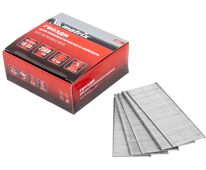 MATRIX Гвозди для пневматического нейлера 16GA, сечение 1.6 х 1.4, длина 32 мм, 2500 шт 57605