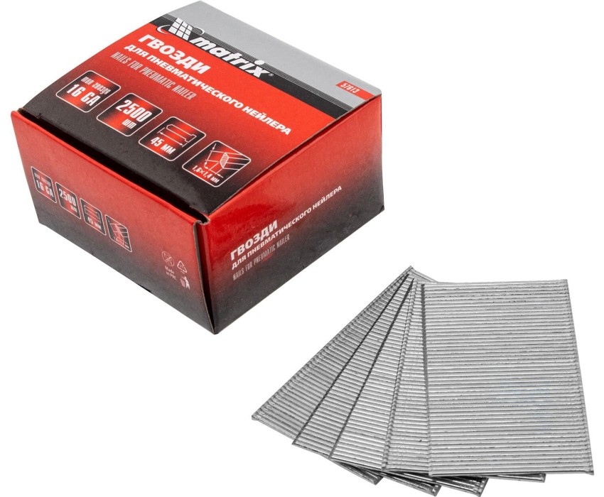 MATRIX Гвозди для пневматического нейлера 16GA, сечение 1.6 х 1.4, длина 45 мм, 2500 шт 57613