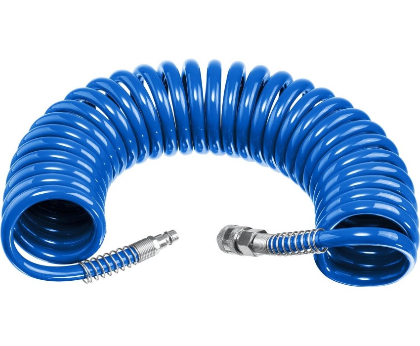 ЗУБР 10 м, 8 х 12 мм, 15 бар, воздушный спиральный шланг с фитингами рапид, Профессионал (6472-10)
