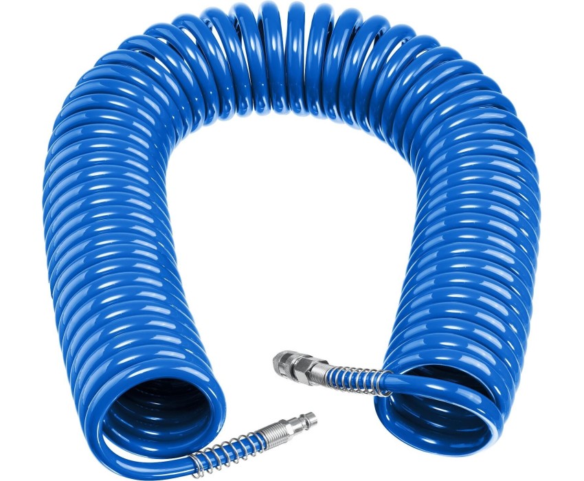 ЗУБР 20 м, 8 х 12 мм, 15 бар, воздушный спиральный шланг с фитингами рапид, Профессионал (6472-20)