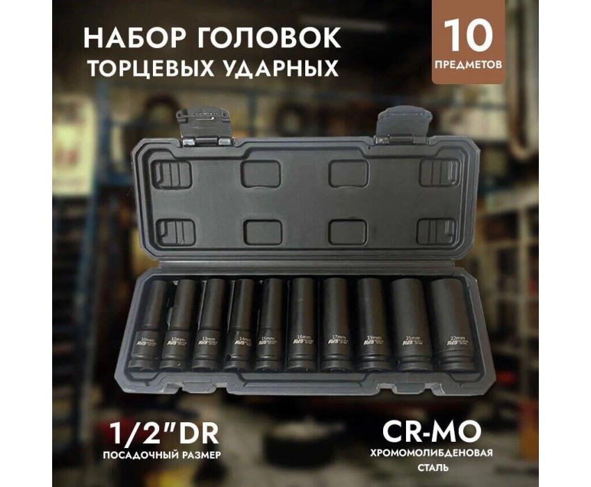 Набор головок AVS TOOLS торцевых ударных глубоких 1/2"DR (10 - 22 мм) (10 предметов) NG12-10ID