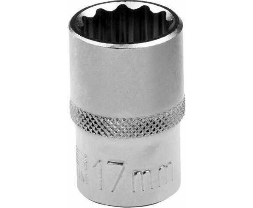 Головка торцевая STELS Головка торцевая, 17 мм, двенадцатигранная, CrV, под квадрат 1/2, хромированная 13662