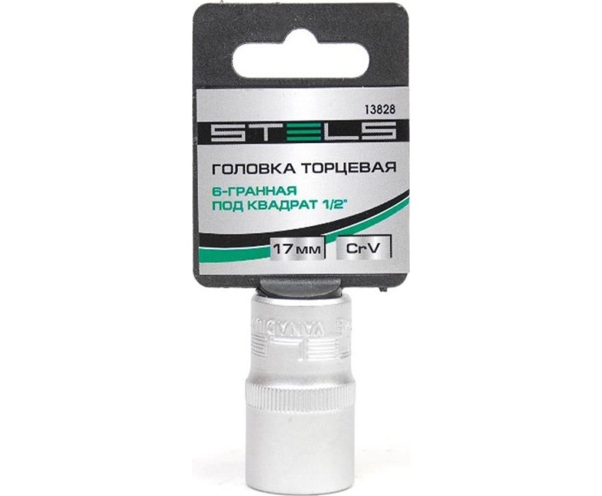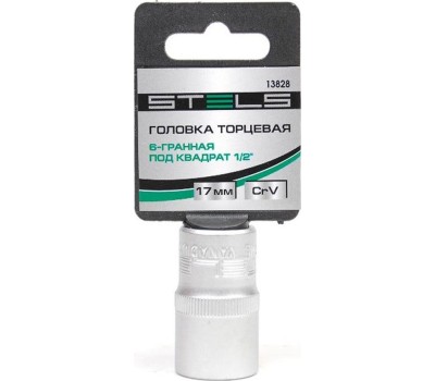 Головка торцевая STELS Головка торцевая, 17 мм, шестигранная, CrV, под квадрат 1/2 13828