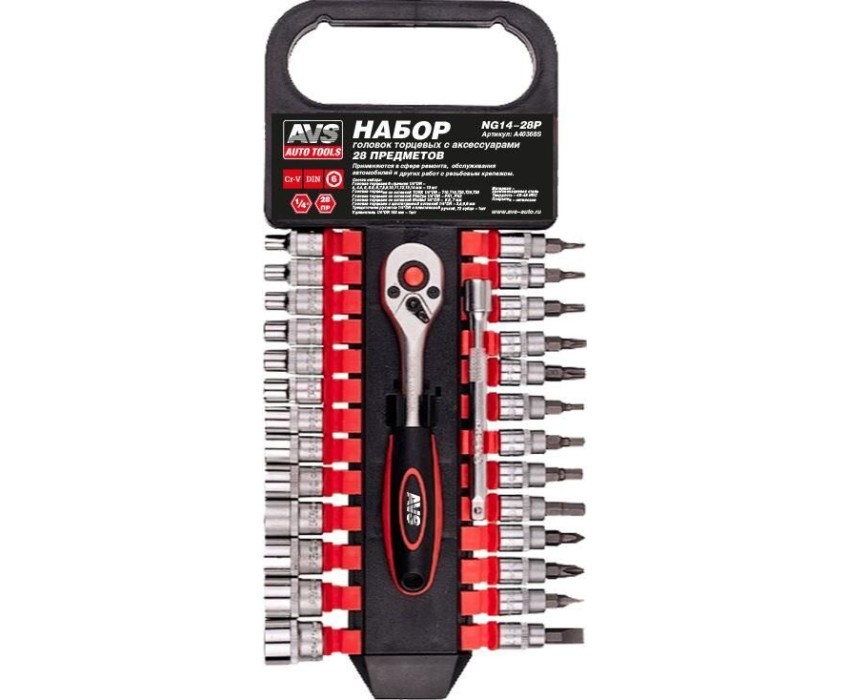 Набор головок AVS TOOLS Набор головок торцевых с аксессуарами 1/4"DR (4-14 мм) (28 предметов) AVS NG14-28P