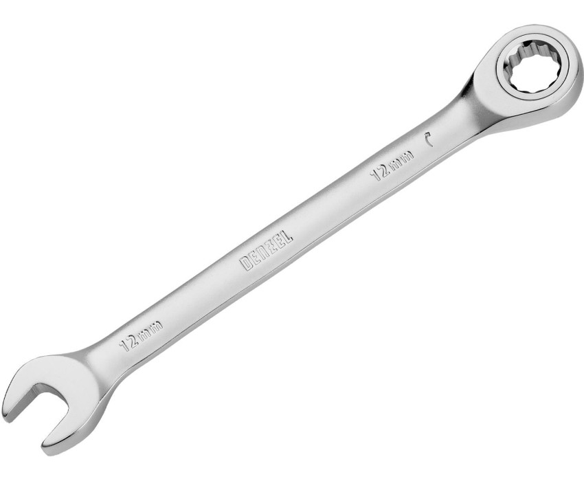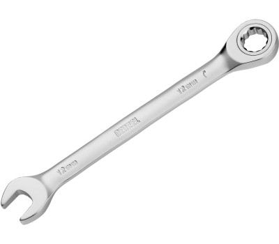 Ключ DENZEL Ключ комбинированный трещоточный, 12 мм, CrV, матовый хром 14706