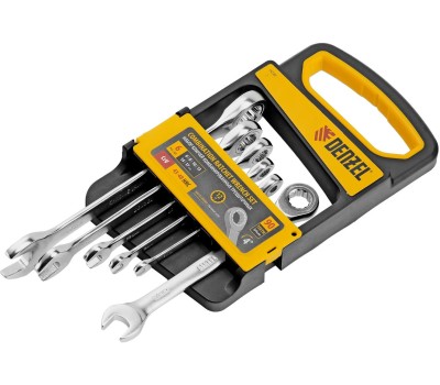 Набор ключей DENZEL Набор ключей комбинированных трещоточных 6-17 мм, 6 шт., CrV, матовый хром 14720
