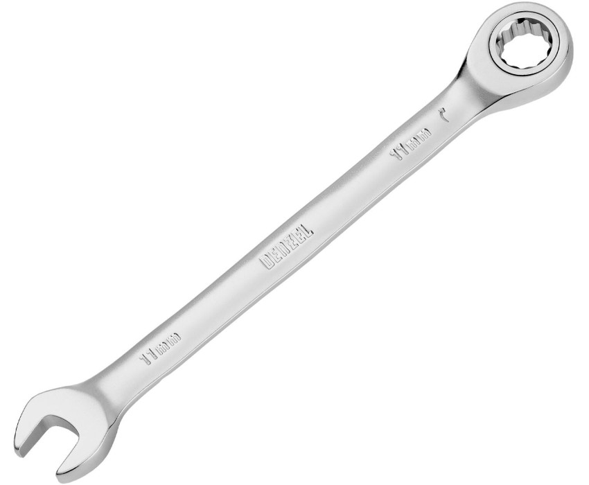 Ключ DENZEL Ключ комбинированный трещоточный, 11 мм, CrV, матовый хром 14705