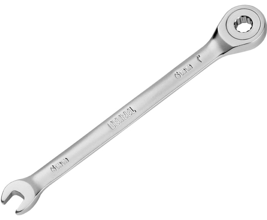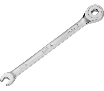 Ключ DENZEL Ключ комбинированный трещоточный, 6 мм, CrV, матовый хром 14700