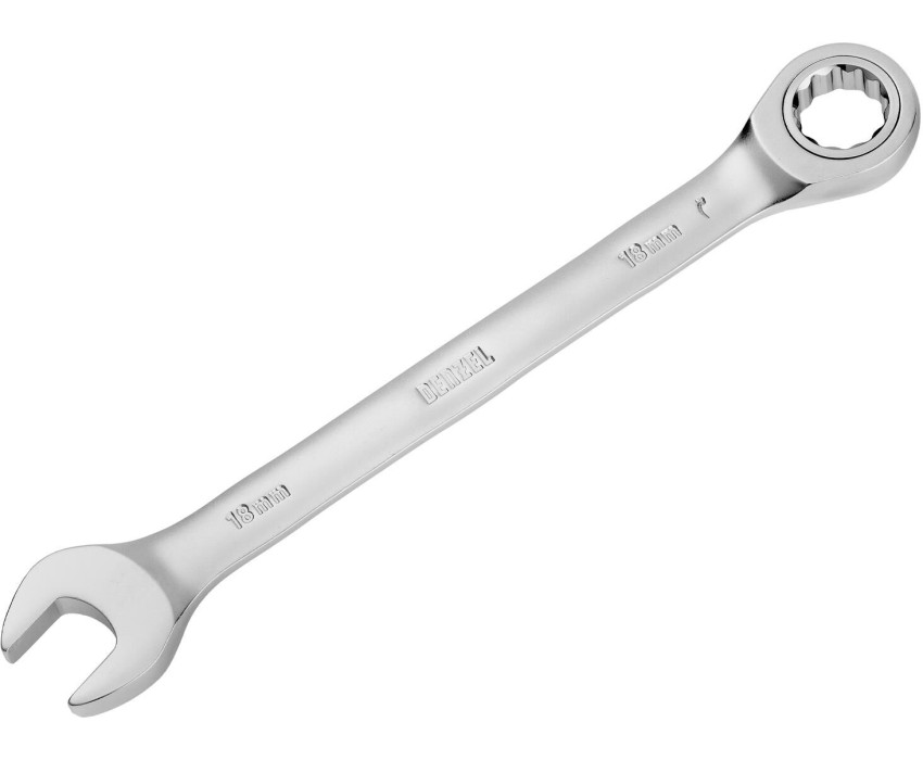 Ключ DENZEL Ключ комбинированный трещоточный, 18 мм, CrV, матовый хром 14712