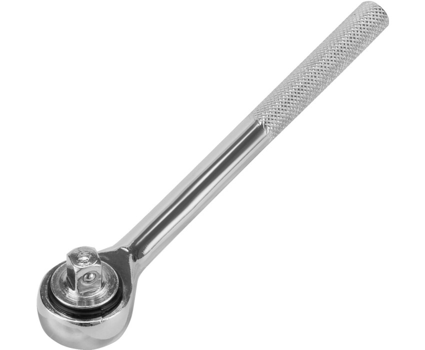Ключ-трещотка Sparta 140405 из стали CrV, с присоединительным квадратом 3/8" и переключателем, применяется для монтажа и демонтажа болтов и гаек при помощи торцевых головок. Храповой механизм облегчает работу в ограниченном пространстве. Инструмент пригодится в ремонтной мастерской, автосервисе, а также дома или на даче. Преимущества Высокий показатель прочности и износостойкости — ключ изготовлен из хромованадиевой стали. Надежная защита от коррозии — поверхность ключа хромирована. Переключатель реверса — можно быстро изменить направление вращения. Функция быстрого сброса — для замены насадки требуется всего несколько секунд. Надежная фиксация насадки — благодаря шариковому фиксатору она не отскакивает во время работы. Комфортная работа — рукоятка с рельефной поверхностью не выскальзывает из ладони.