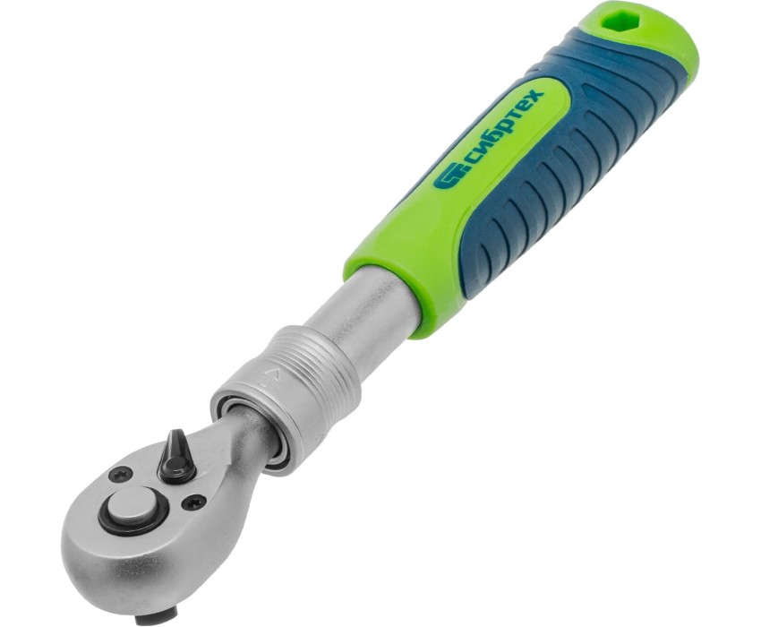Ключ-трещотка 3/8″ Сибртех 14076 с телескопической рукояткой длиной 215-315 мм, храповым механизмом с 72 зубьями и функцией быстрого сброса, — инструмент для работы с резьбовым крепежом. Используется совместно с торцевыми головками, удлинителями, адаптерами. Телескопическая рукоятка упрощает работу с труднодоступным крепежом, а также позволяет увеличить прикладываемое усилие. Трещоточный механизм с 72 зубьями облегчает работу, угол поворота составляет 5°, что удобно в условиях ограниченного пространства. Инструмент пригодится в мастерской и гараже. Преимущества Удобная регулировка длины — предусмотрено 5 уровней фиксации рукоятки в диапазоне 215-315 мм. Прочность — инструмент изготовлен из закаленной хромованадиевой стали твердостью 49-55 HRC и выдерживает интенсивное использование без риска поломки. Защита от разрушения — хромовое покрытие предотвращает образование коррозии. Решение широкого спектра задач — механизм быстрого сброса упрощает и ускоряет замену насадок. Быстрый переход от монтажа к демонтажу — переключатель реверса с металлическим кольцом позволяет мгновенно изменить направление вращения. Надежная фиксация насадок — шариковый замок крепко удерживает торцевую головку. Эргономичность — удобная рукоятка с рельефной поверхностью удобно ложится в руку. Удобное хранение — в рукоятке предусмотрено отверстие для подвешивания на крючок или гвоздь.