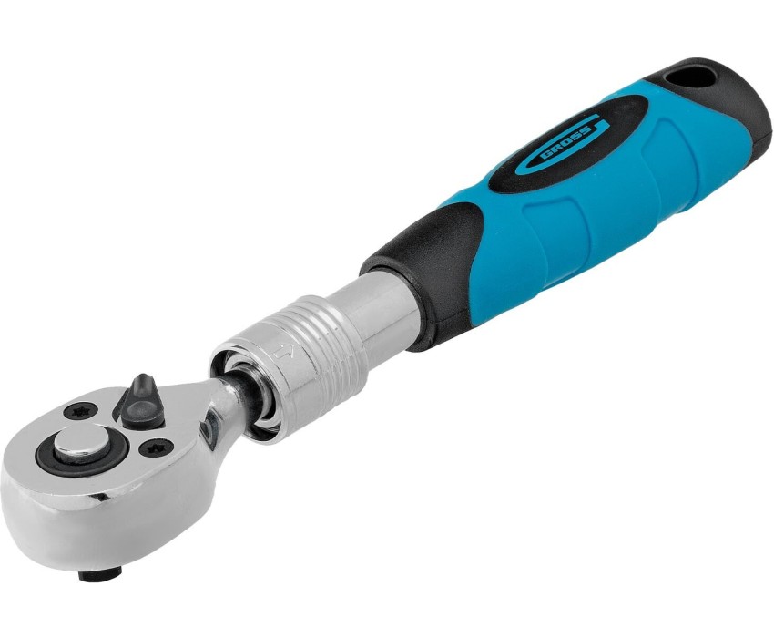 GROSS Ключ-трещотка телескопический 1/4", 150-200 мм, CrV, 72 зуба, с быстрым сбросом, хром 14074