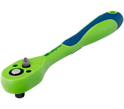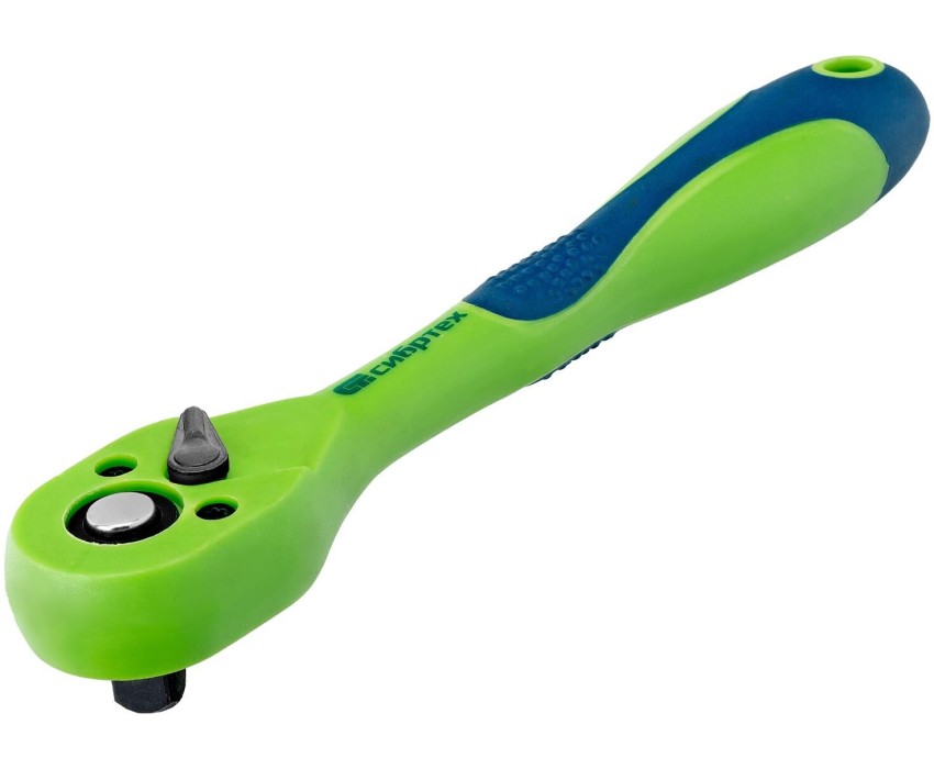 Ключ-трещотка Сибртех 14008 с двухкомпонентной рукояткой и присоединительным квадратом 3/8" используется с торцевыми головками, имеющими посадочное гнездо соответствующего размера. Предназначен для закручивания и раскручивания резьбовых соединений. Храповой механизм с 72 зубцами обеспечивает плавное вращение. Ключ применяется для ремонта автомобилей, техники и оборудования, а также пригодится дома или на даче. Преимущества Прочность и долговечность — инструмент изготовлен из высококачественной хромованадиевой стали. Удобная работа в ограниченном пространстве — шаг трещотки составляет всего 5°. Быстрый переход от монтажа к демонтажу — направление вращения меняется при помощи переключателя. Простая установка и замена насадки — механизм быстрого сброса позволяет моментально снимать торцевую головку. Надежная фиксация оснастки — металлический шарик-держатель не допускает выпадение торцевых головок, адаптеров и удлинителей. Комфортная эксплуатация — эргономичная двухкомпонентная рукоятка удобно ложится в руку.