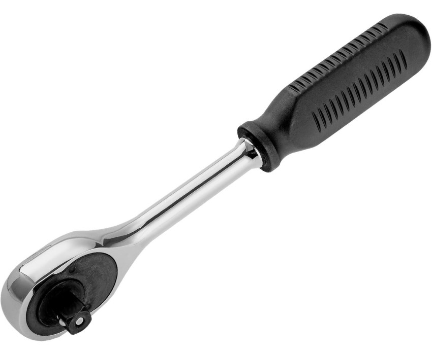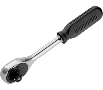 Хромированный ключ-трещотка Сибртех 14004 из стали CrV с посадочным размером 1/2″ и 45-зубым храповым механизмом, с функцией быстрого сброса, используется для работы с резьбовым крепежом. Инструмент пригодится дома, в мастерской и гараже. Преимущества Прочность — ключ изготовлен из закаленной хромованадиевой стали и выдерживает высокие нагрузки. Долговечность — хромированная поверхность устойчива к образованию коррозии. Эргономичность — рукоятка с нескользящей рельефной поверхностью надежно ложится в руку, поэтому работать инструментом комфортно. Функция реверса — при помощи переключателя с металлическим флажком можно одним движением изменить направление вращения трещотки. Надежная фиксация — шариковый замок крепко удерживает торцевую головку, поэтому она не соскочит во время работы. Быстрый сброс — достаточно нажать на кнопку, чтобы освободить головку от насадки, это особенно удобно для работы с крепежом разного размера.