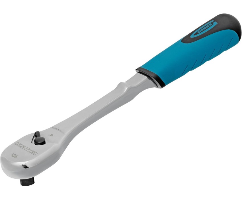 GROSS Ключ-трещотка 1/2", CrV, 90 зубьев, усиленный, хром 14055