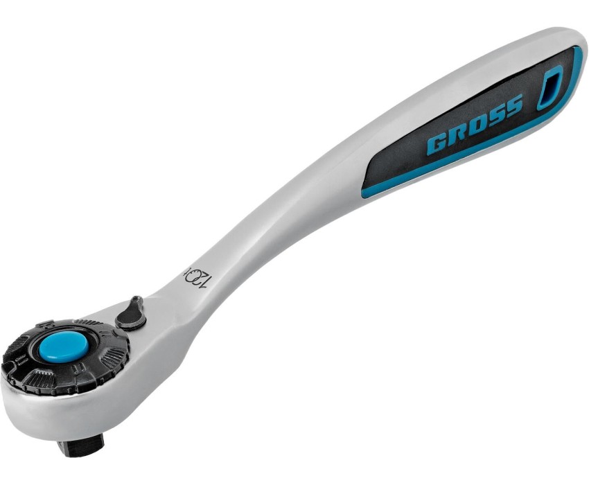 GROSS Ключ-трещотка 1/2", CrV, 120 зубьев, с быстрым сбросом, цельнометаллический, хром 14137