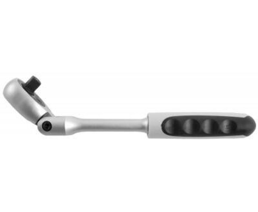Рукоятка трещоточная с шарниром 1/4"DR, 72 зубцов, 180 мм. Трещоточная рукоятка с флажковым переключателем и композитной, оригинальной двухкомпонентной бензо-масло-стойкой рукояткой, обеспечивающей надежный захват инструмента при работе. Изделие соответствует требованиям ГОСТ 22402-77. Храповое колесо в 72 зубца, обеспечивающее 5° свободного хода и увеличенное пятно контакта храпового механизма, гарантирует большой запас прочности при высоком крутящем моменте. Устройство быстрого сброса обеспечивает легкую смену и надежно фиксирует насадку на приводе. Имеет шарнир с сегментированной фиксацией.