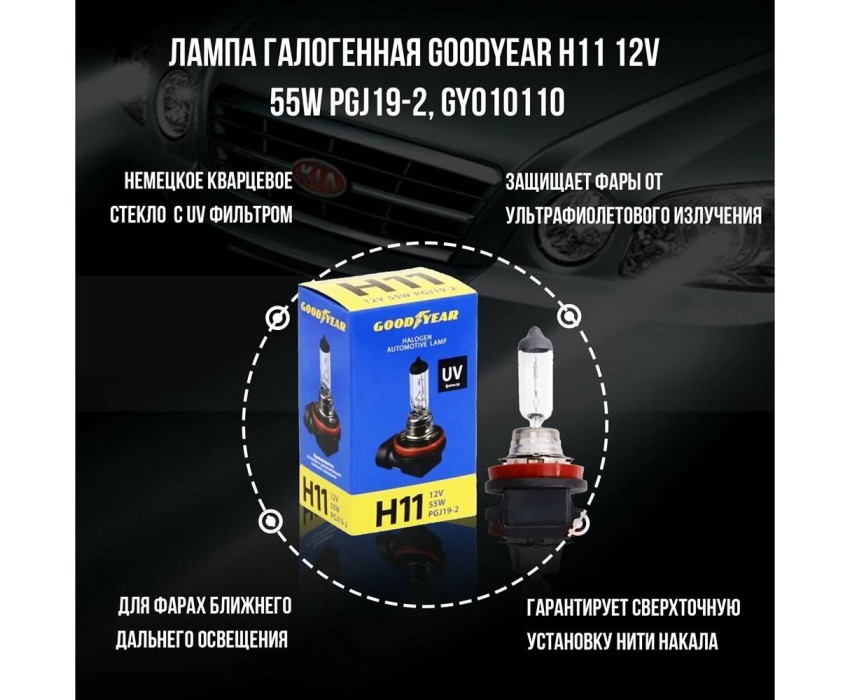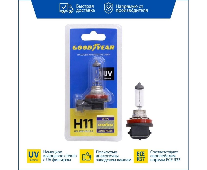 Лампа галогенная GOODYEAR GY010111 лампа галогенная автомобильная Н11 12V 55W PGJ19-2 (блистер)