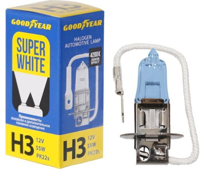 Лампа галогенная GOODYEAR GY013126 лампа галогенная автомобильная Н3 12V 55W PK22s Super White
