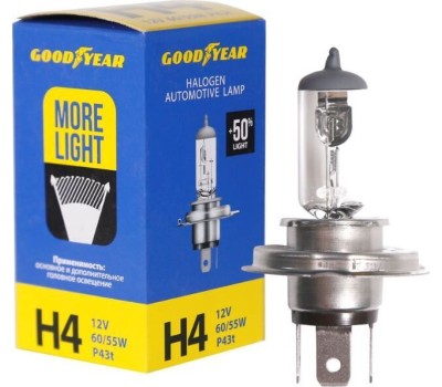 Лампа галогенная GOODYEAR GY014124 лампа галогенная автомобильная Н4 12V 60/55W P43t More Light