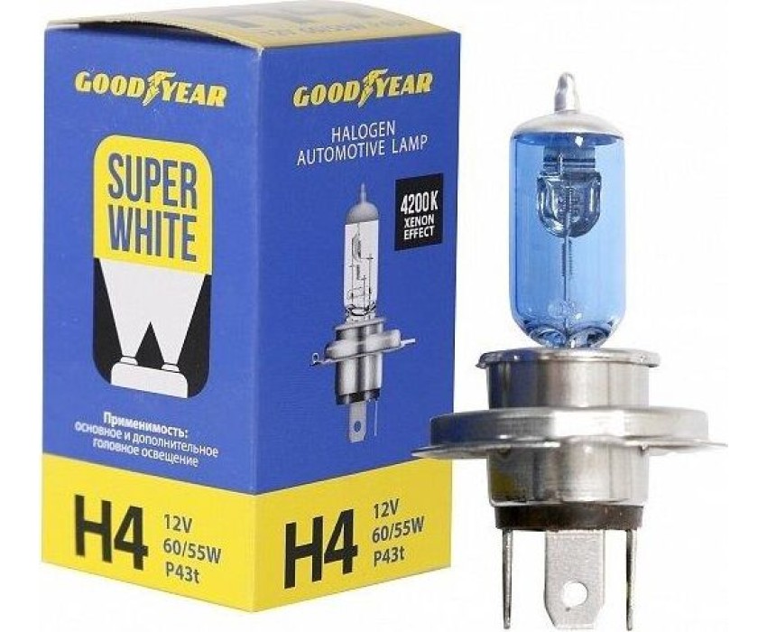 Лампа галогенная GOODYEAR GY014127 лампа галогенная автомобильная Н4 12V 60/55W P43t Super White (блистер)
