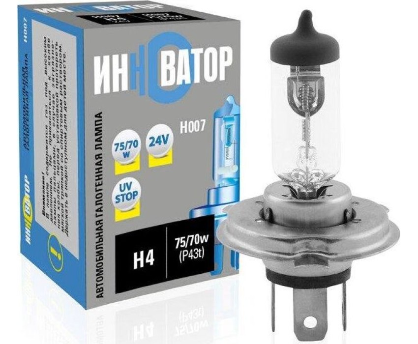 Галогенная лампа Goodyear H4 24V используется в фарах ближнего и дальнего освещения грузовых автомобилей. Соответствуют характеристикам ламп, которыми комплектуются автомобили на конвеере. Для изготовления ламп Goodyear H4 24V используется немецкое кварцевое стекло с UV фильтром, который защищает фары от ультрафиолетового излучения. Благодаря этому фара не мутнеет, сохраняя яркость освещения. Лампы Goodyear произведены на автоматизированном оборудовании, что гарантирует сверхточную установку нити накала. Благодаря этому световой поток распределяется равномерно и обеспечивает хороший обзор. " Напряжение: 24В " Мощность: 75/70Вт " Цоколь: P43t " Габариты ДхШхВ: 45x45x70 мм " Вес: 31-33 г.