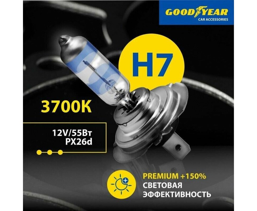 Лампа галогенная GOODYEAR Н7 12V 55W PX26d Premium +150% GY017150