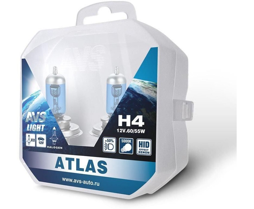 Лампы с повышенной светоотдачей . Автолампа AVS Atlas на 30% ярче стандартных ламп. Свет фар с этими лампами похож на свет фар с ксеноновыми лампами.(XENON EFFECT) Назначение Для ближнего/дальнего света, Для противотуманных фар Характеристики Цветовая температура: 5000 К. Световой поток: 1650/1000 Lm Мощность: 60/55W Напряжение: 12 V. Цоколь: P43t (H4) Свет:теплый белый Не предназначены для использования на дорогах общего пользования