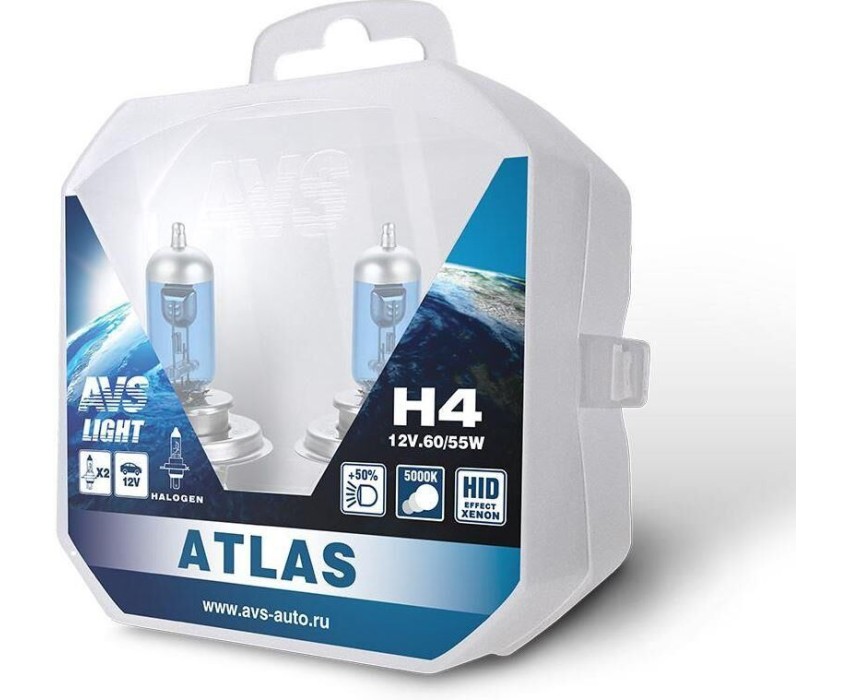 Лампа галогенная AVS ATLAS PB/5000К/PB H4.12V.60/55W. 2шт