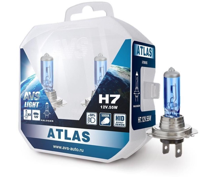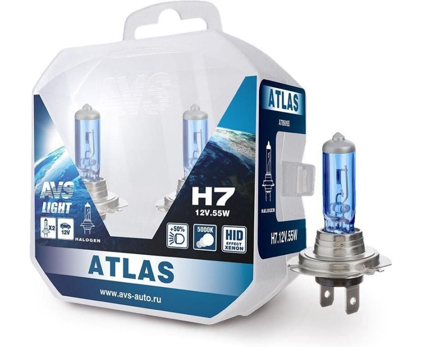 Лампа галогенная AVS ATLAS PB/5000К/PB H7.12V.55W. 2шт