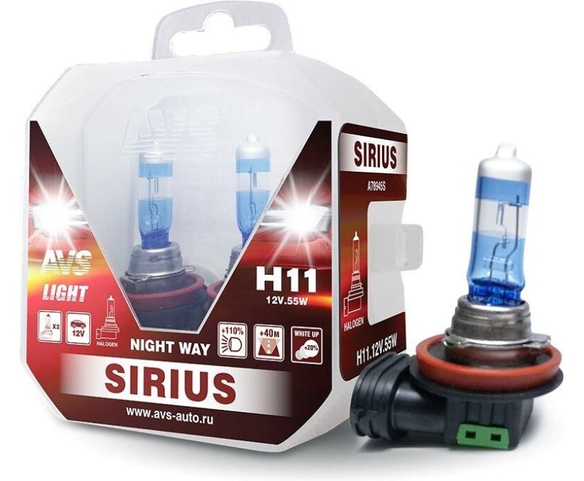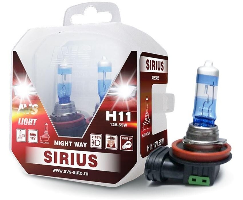 Лампа галогенная AVS SIRIUS/NIGHT WAY/ PB H11.12V.55W. 2шт
