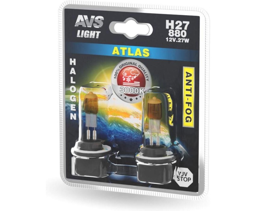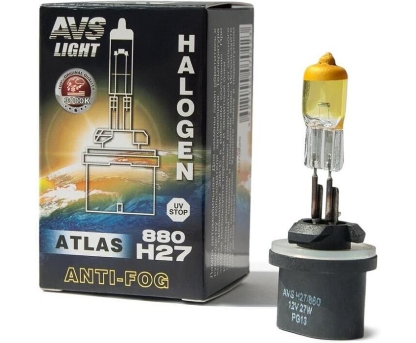 Лампа галогенная AVS Галогенная лампа /ATLAS ANTI-FOG/желтый H27/880.12V.27W.блистер 2шт