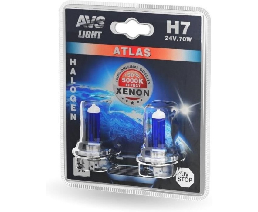 Лампа галогенная AVS Галогенная лампа ATLAS/5000К/ H7.24V.70W.блистер 2шт