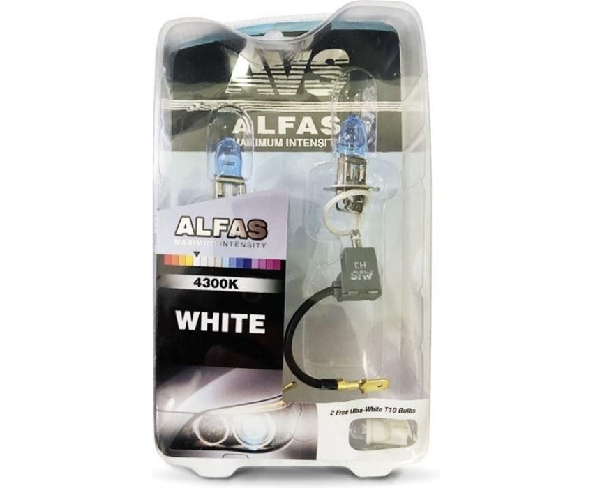 Лампа галогенная AVS Газонаполненные лампы ALFAS Maximum Intensity 4300K H3 12V 85W, комплект 2+2 (W5W) шт
