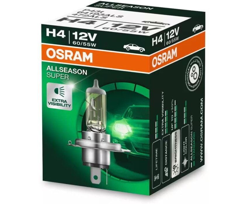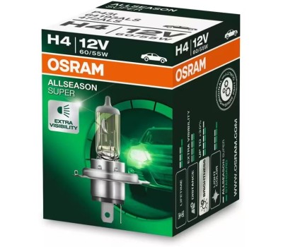 Лампа галогенная OSRAM Автолампа галогенная H4 (60/55W P43T5 +30%) ALLSEASON (евробокс, 2шт) 12V