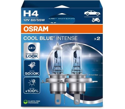 Лампа галогенная OSRAM Автолампа галогенная H4 (60/55W P43T +100%) COOL BLUE INTENSE (евробокс, 2шт) 5000K 12V