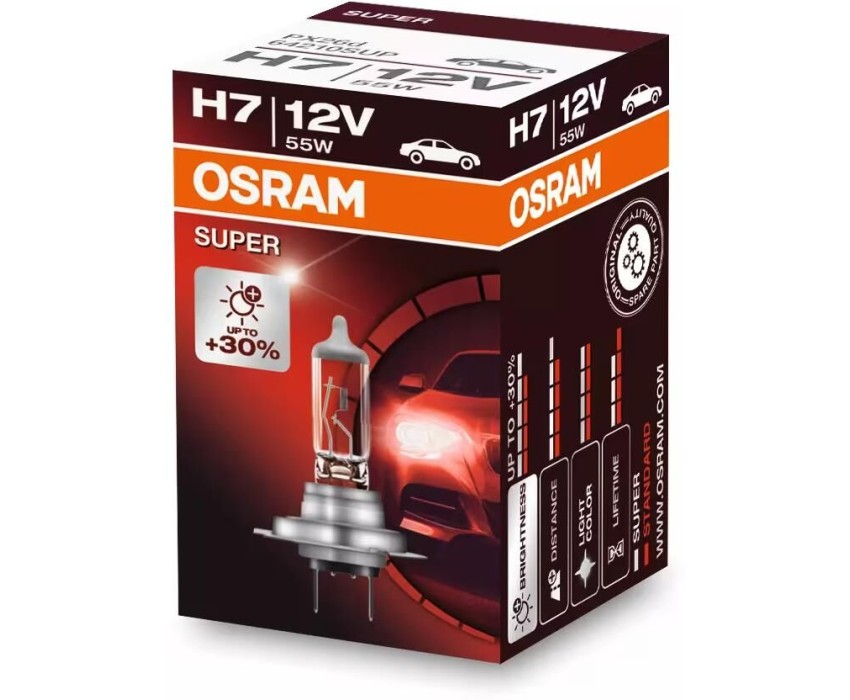 Лампа галогенная OSRAM Автолампа галогенная H7 (55W PX26D +30%) SUPER 12V