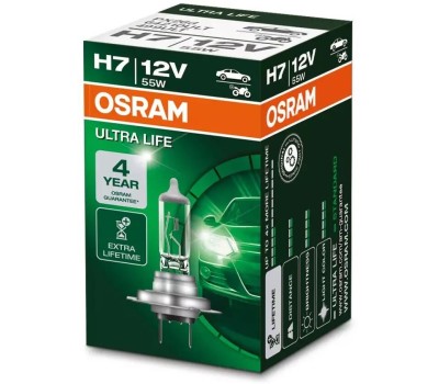 Лампа галогенная OSRAM Автолампа галогенная H7 (55W PX26D) ULTRA LIFE 12V